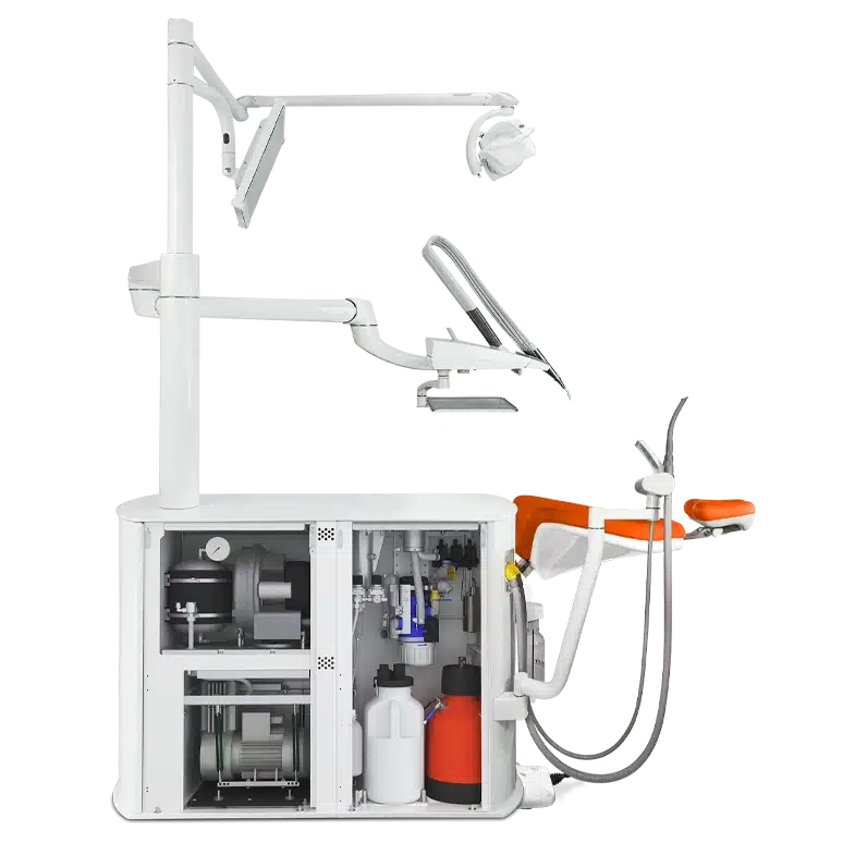 Een echt compromisloos Stand-Alone behandelconcept met volledig geïntegreerde afzuigmotor, compressor, schoon en vies watervoorziening, amalgaamafscheiding en zelfs de mogelijkheid voor een spittoon, u kiest de samenstelling naar keuze!